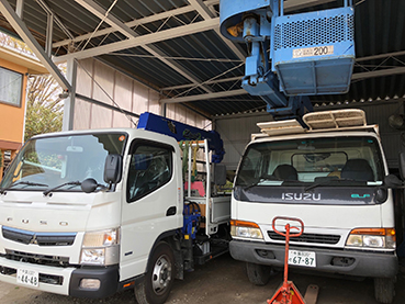 福島工芸では、高所作業車17Mを所有していますので、高いところの作業も迅速に対応可能です。